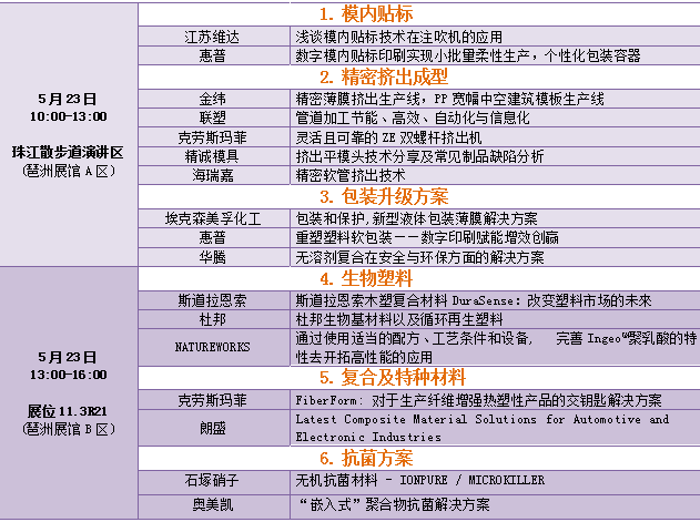 作為CHINAPLAS最重要的科技發布活動 – 科技講臺,將于5月21-23日在展會現場的“A區珠散演講區”和展館B區展位11.3R21兩個場地舉行。