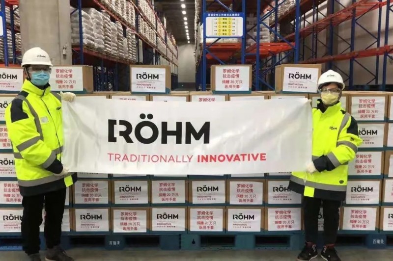 丁腈手套主要由丁腈橡膠加工而成,是使用在醫(yī)療、醫(yī)藥、衛(wèi)生等操作行業(yè)中,防止交叉感染必不可少的手部保護(hù)用品。該批丁腈手套由羅姆的長期客戶石家莊鴻銳集團(tuán)加急生產(chǎn)。該產(chǎn)品采用了羅姆公司生產(chǎn)的MERACRYLTM GMAA甲基丙烯酸作為重要原料。