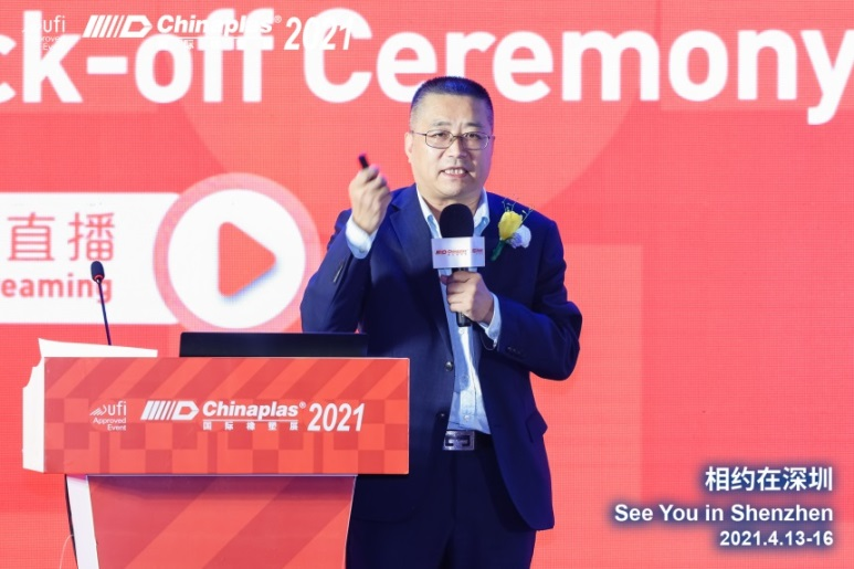 雅式展覽服務有限公司董事長朱裕倫先生在致辭中表示,時至今日,中國本土生產的塑料機械的產量已連續15年居世界第一,顯示中國已從生產大國向生產強國邁進。在這個發展過程中,“CHINAPLAS國際橡塑展”在促進中外技術交流、貿易往來甚至合作、合資等方面,都作出顯著的貢獻。展會從2021年開始,每逢單年移師深圳進行,正是順應高端產業發展的需求,及借助大灣區發展的動力。讓我們一起把握國家新政策所帶來的機遇。