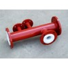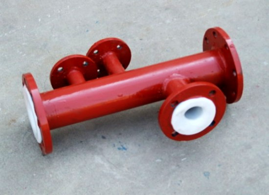 首先采用進口PTFE粉末,推(擠)壓成管子,然后將它強行拉入無縫鋼管(襯管外徑略大于鋼管內徑1.5-2mm),形成無間隙緊襯。為了消除壓力,將它放在爐中,加溫至180℃進行恒溫處理,使之適應在180℃以下的溫度中使用。同時,推(擠)壓管的軸向抗拉強度比纏繞管明顯要好。此管道具有理想的耐正、負壓能力。